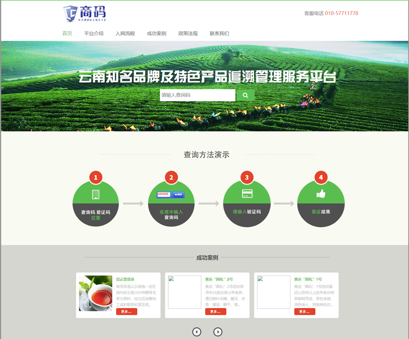 3) 云南知名品牌及特色產品追溯管理系統:
