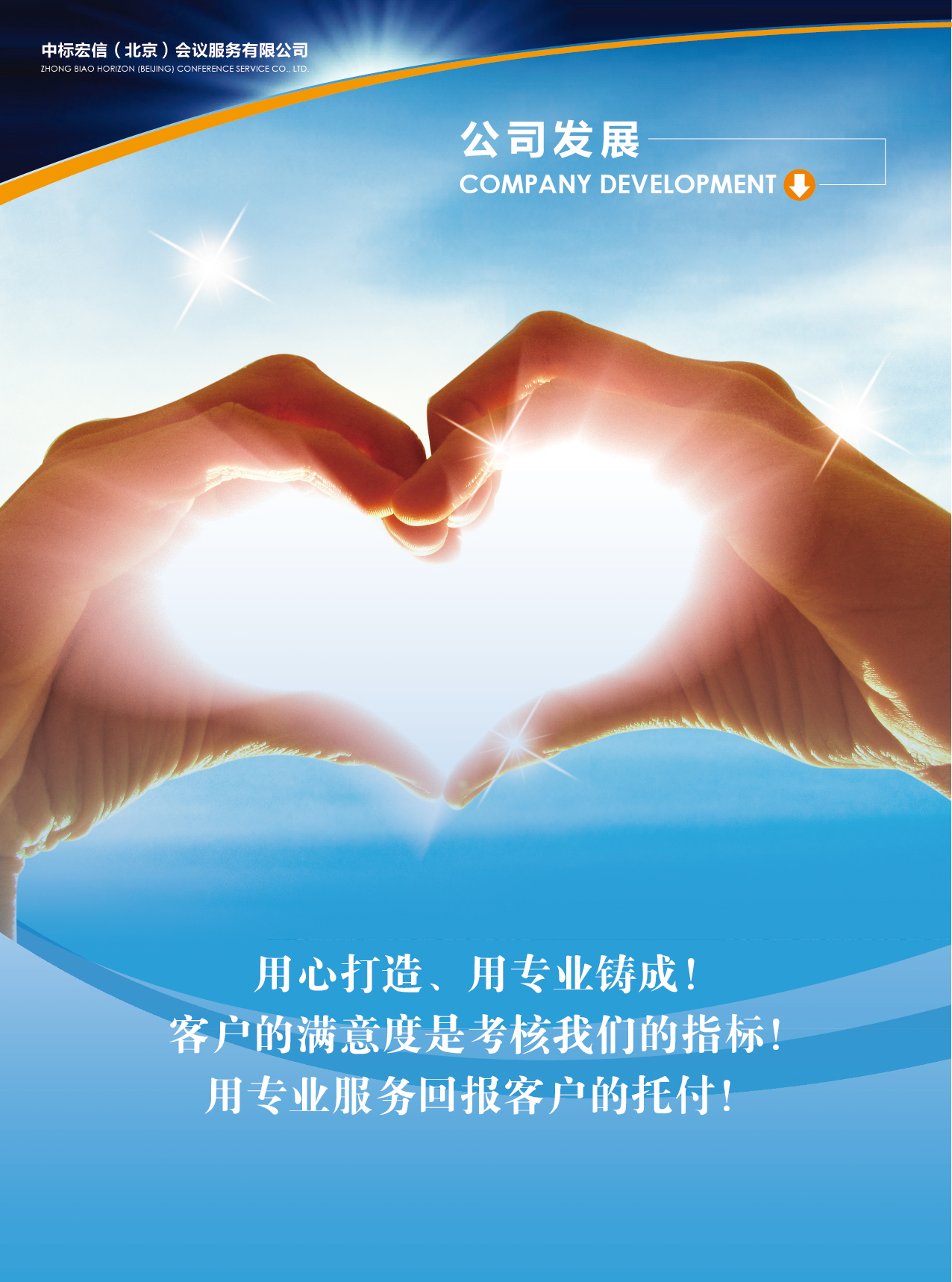 中標宏信(北京)會議服務有限公司隸屬于中國標準科技集團有限公司,注冊資金500萬元人民幣。公司擁有現代化企業集團管理的優勢,秉承“誠信為本、服務至上”的宗旨,以“專業、高效、誠信、共贏”為原則,努力打造高素質團隊,不斷謀求創新發展思路。憑借專業的技能、豐富的經驗、優秀的職業素質和敬業精神,細心周到的為政府機關、企事業單位提供餐飲、會議、展覽展示及各類活動的相關服務工作。