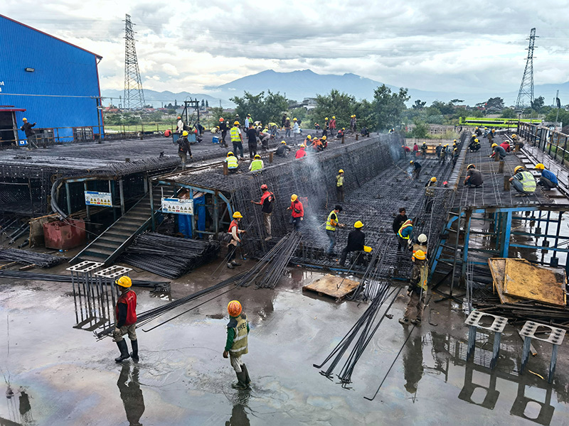 工人在印度尼西亞雅萬高鐵4號梁場作業(yè)(2022年5月1日攝)。新華社發(fā)(王增堃 攝)