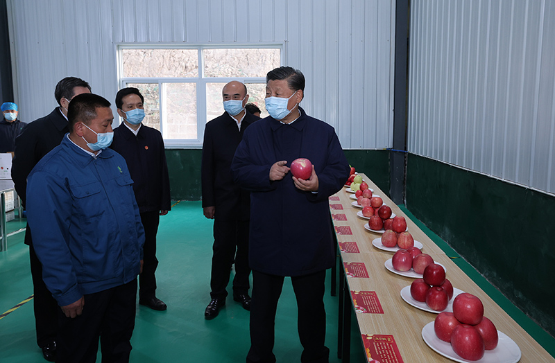 10月26日至28日,中共中央總書記、國家主席、中央軍委主席習(xí)近平在陜西省延安市、河南省安陽市考察。這是26日下午,習(xí)近平在延安市安塞區(qū)高橋鎮(zhèn)南溝村蘋果洗選車間,察看當(dāng)?shù)胤N植的蘋果。新華社記者 鞠鵬 攝