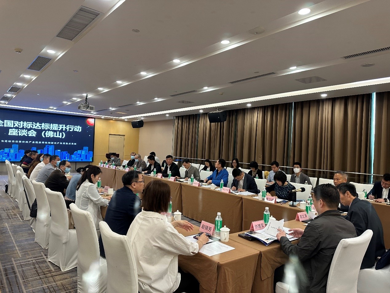 座談會上,對標達標專項辦介紹了工作開展情況以及對標達標升級試點工作情況,佛山市監督管理局匯報了佛山市對標達標工作推進情況并提出了意見和建議。佛山市各區市場監督管理部門、技術機構、行業協會、企業代表各單位結合自身工作特點,交流研討了當前參與對標達標工作遇到的難點及問題,并就佛山市持續深入開展對標達標工作提出了針對性的意見建議。