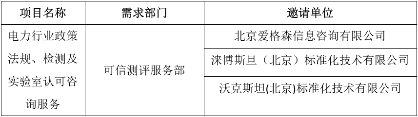 按照《標新科技(北京)有限公司采購工作管理辦法(試行)》要求,現(xiàn)對“電力行業(yè)政策法規(guī)、檢測及實驗室認可咨詢服務(wù)”項目競爭性談判邀請單位進行公示。